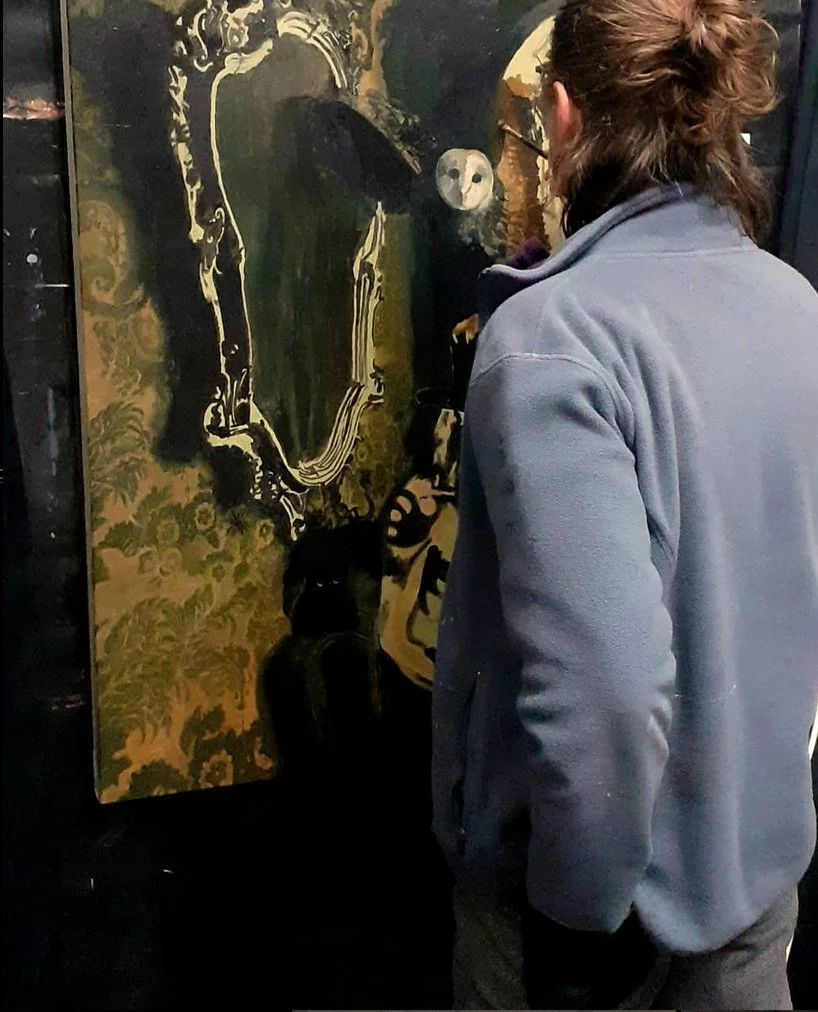 I prefer analog painting over digital works since 2017, but photography and digital imaging have never left me and remain important in my work. I used to immerse myself in different artistic fields for several years, with the ambition to learn the essence of them until I finally got into figurative oil painting. And so I’m a skilled restaurator, sculptor, set designer, media designer, and digital artist. My subjects explore the texture of the human world, psychological states, and the pervasive fabric of reality, with dreamlike moods emerging in composed, fictional spaces and scenarios.